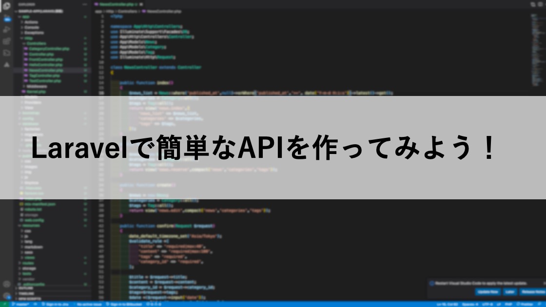 Web用のルーティングはweb.phpに定義しますが、APIの場合api.phpにルーティングを定義しないといけないので、注意してください。